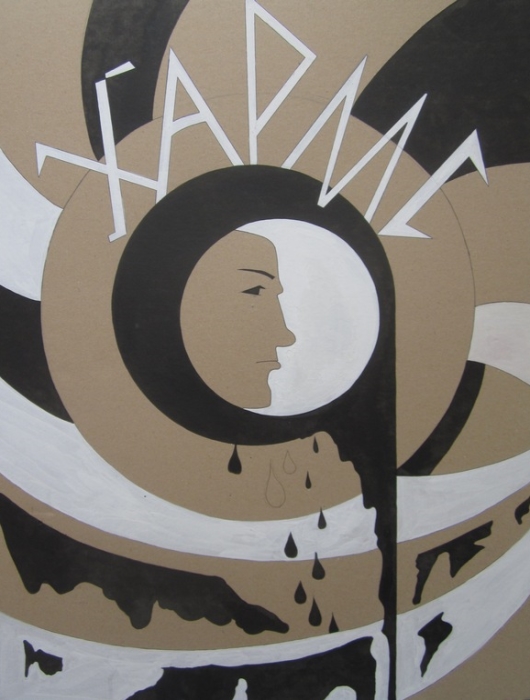 Зритель вовлекается в интеллектуальную игру с визуальными и образами, текстом, шрифтовыми композициями. Возникает причудливая атмосфера абсурда, экспрессивной графики, мистических знаков.