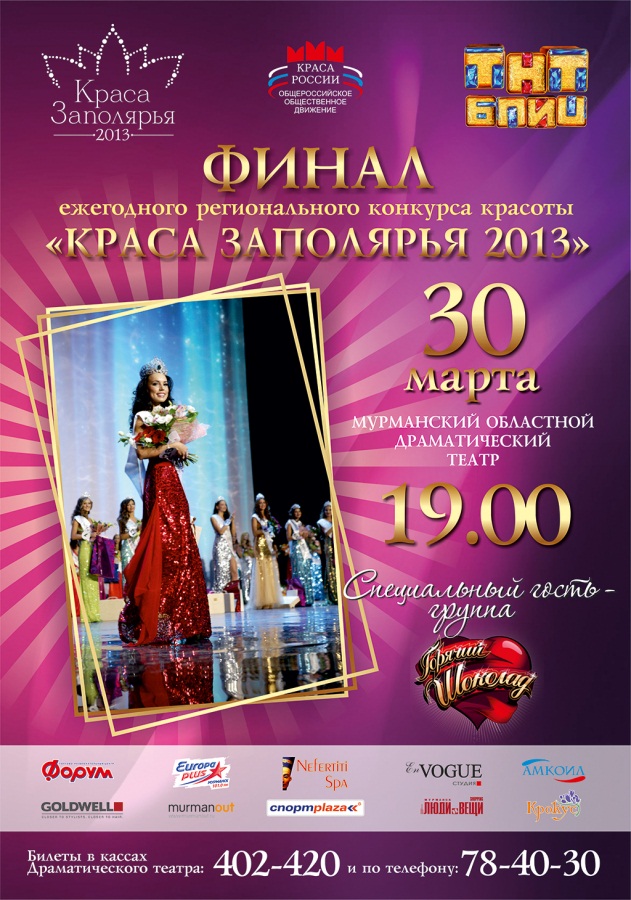 Конкурс "Краса Заполярья" на протяжении 12 лет является одним из самых значимых культурных мероприятий Мурманской области, интерес к которому с каждым годом только растет. И это немудрено, достаточно назвать имена наших мурманских красавиц, которые благодаря старту именно на этом конкурсе добились больших результатов и успеха на телевидении, в модельном бизнесе и других сферах деятельности: Ирина Коваленко, Елена Мусихина, Вера Гоппен, Алеся Халезова, Валентина и Екатерина Григорьевы и многие другие.