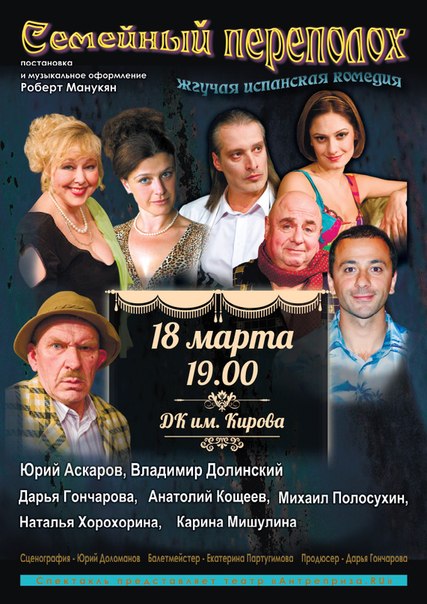 Роли исполняют: Юрий Аскаров, Владимир Долинский, Михаил Полосухин, Наталья Хорохорина, Дарья Гончарова, Карина Мишулина, Анатолий Кощеев.