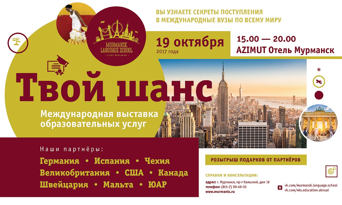 Впервые «Мурманская Языковая Школа» совместно с агентством международного образования «Инсайт-Лингва» приглашают Вас на международную образовательную выставку-ярмарку!