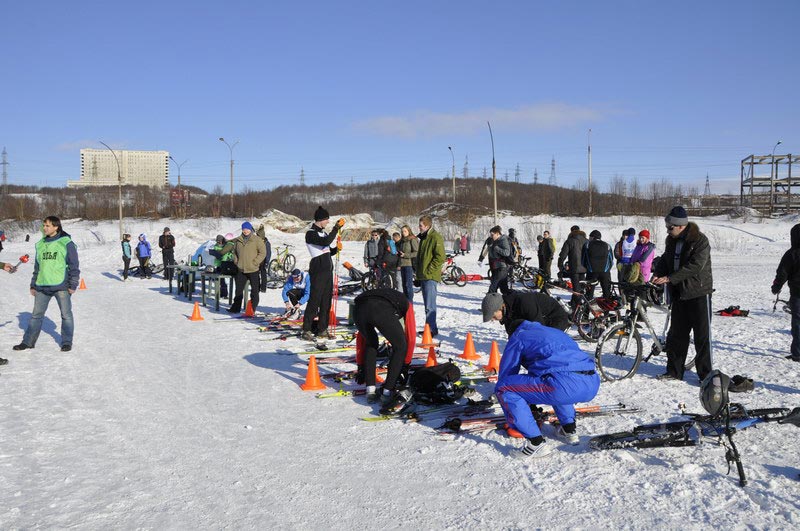 Мы приглашаем вас принять участие в этом интересном и все еще новом для Мурманской области троеборье. Дистанция: бег – 1,9 км, велосипед – 3,8 км, лыжи – 3,8 км.
