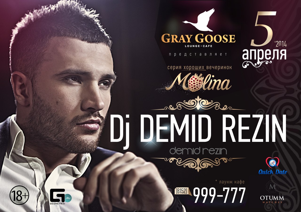 Lounge Cafe Gray Goose представляет серию хороших вечеринок – Malina, специальный гость первой вечеринки – Dj Demid Rezin (MTV, Каникулы в Мексике)