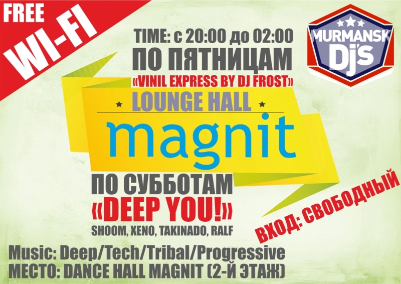Каждую пятницу и субботу ты сможешь окунуться в незабываемую атмосферу новинок современной электронно-танцевальной музыки вместе с популярными диск-жокеями Мурманска.